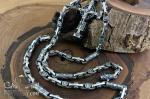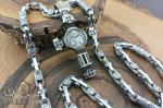 Данный набор изготовлен по индивидуальному заказу нашего клиента. Комплект состоит из серебряного крестика на деревянной основе с эмалью, а также литьевой цепочки с рунами Альгиз и Райдо, выполненных в едином брутальном стиле с чернением.