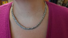 Полновесная серебряная цепочка на шею. Данное плетение достаточно трудоёмкое в исполнении, и большинство ювелиров не обладают достаточным уровнем навыков в изготовлении, чтобы достичь высокого качества украшений, не говоря уже о том, чтобы просто изготовить. На текущий момент качество наших работ из этого плетения существенно превосходит большинство других производителей.