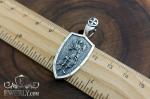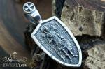 Подвеска «Архангел Михаил» в форме щита из серебра 925 пробы с чернением проби